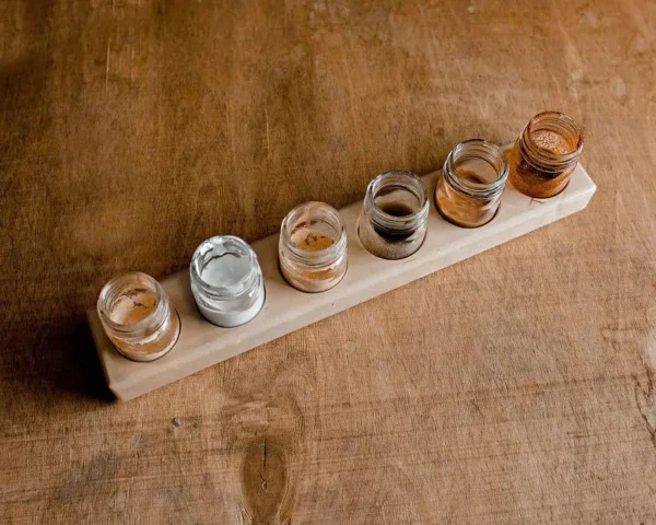 This set includes six 50 ml glass jars with white lids OR six 100ml glass jars with black lids. The holder measures 35 x 6 x 3 cm and is made of European Birchwood with a water-based lacquer that draws deeply into the wood giving long-lasting protection.