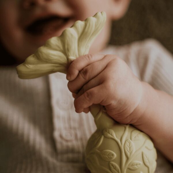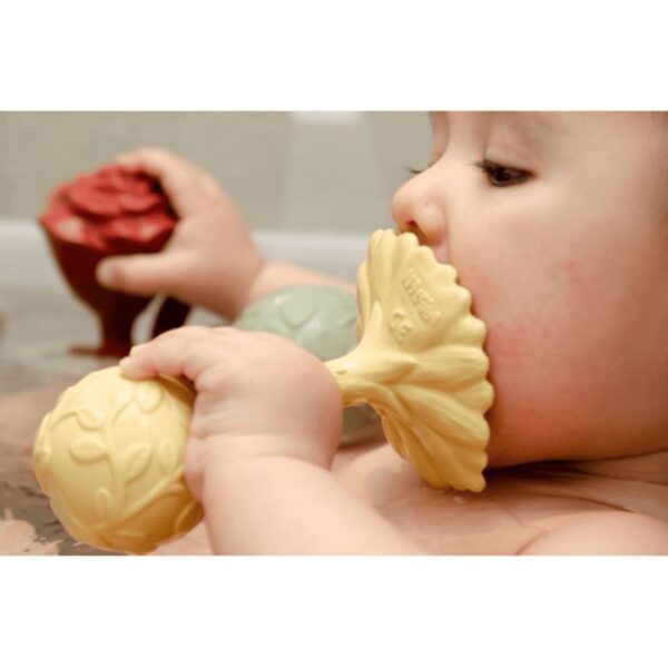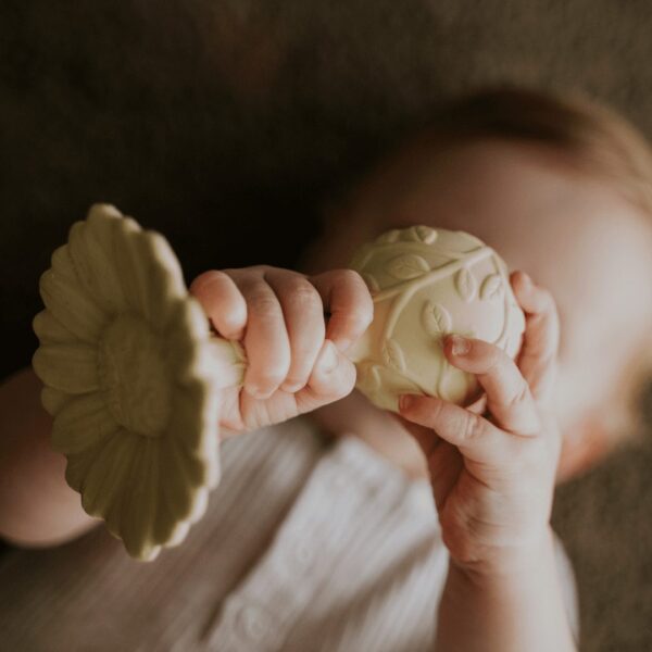 The textured surfaces and gentle bell encourage sensory exploration and fine motor skill development, while the lightweight design makes it easy for little hands to grasp. The Natruba Daisy Teether is versatile and can also be used as a bath toy for even more playtime possibilities.